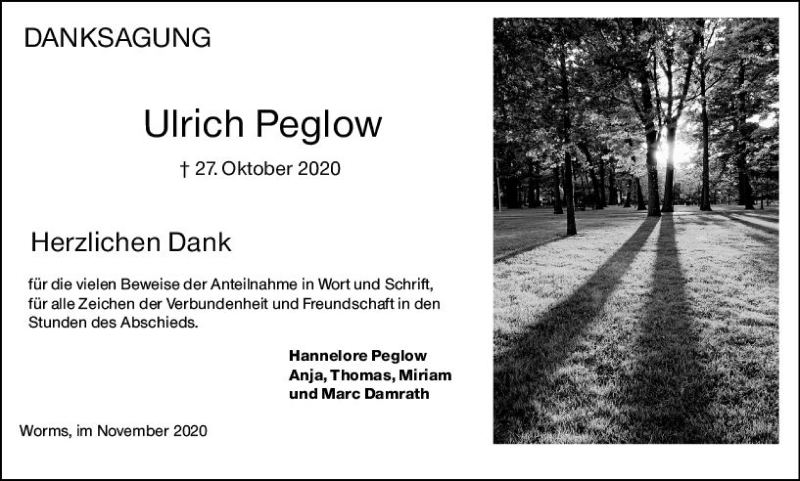 Hier finden Sie alle Traueranzeigen aus der Zeitung, die bisher für Ulrich Peglow erschienen sind. Weitere Traueranzeigen, die in der Zeitung erscheinen, werden hier ebenfalls aufgelistet