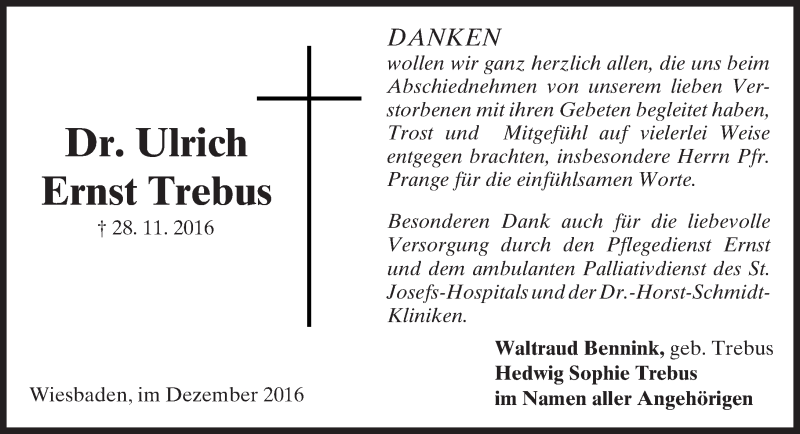 Hier finden Sie alle Traueranzeigen aus der Zeitung, die bisher für Ulrich Ernst Trebus erschienen sind. Weitere Traueranzeigen, die in der Zeitung erscheinen, werden hier ebenfalls aufgelistet
