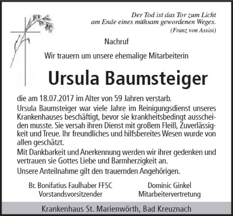 Hier finden Sie alle Traueranzeigen aus der Zeitung, die bisher für Ursula Baumsteiger erschienen sind. Weitere Traueranzeigen, die in der Zeitung erscheinen, werden hier ebenfalls aufgelistet