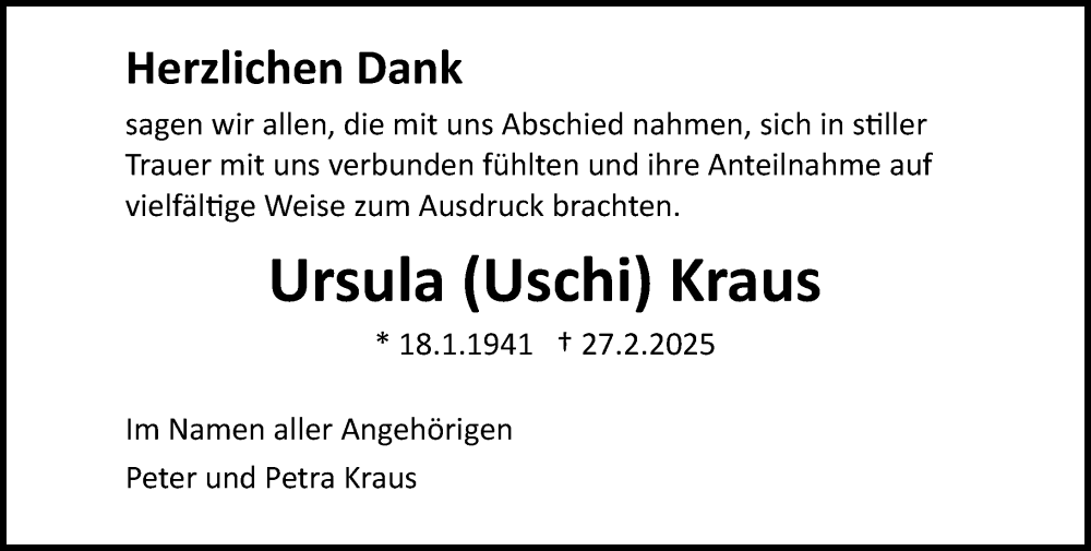 Hier finden Sie alle Traueranzeigen aus der Zeitung, die bisher für Ursula Kraus erschienen sind. Weitere Traueranzeigen, die in der Zeitung erscheinen, werden hier ebenfalls aufgelistet