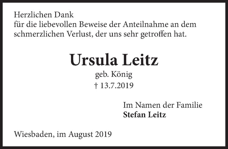 Hier finden Sie alle Traueranzeigen aus der Zeitung, die bisher für Ursula Leitz erschienen sind. Weitere Traueranzeigen, die in der Zeitung erscheinen, werden hier ebenfalls aufgelistet