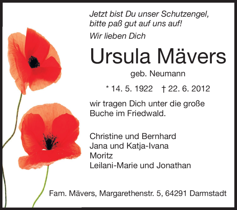 Hier finden Sie alle Traueranzeigen aus der Zeitung, die bisher für Ursula Mävers erschienen sind. Weitere Traueranzeigen, die in der Zeitung erscheinen, werden hier ebenfalls aufgelistet