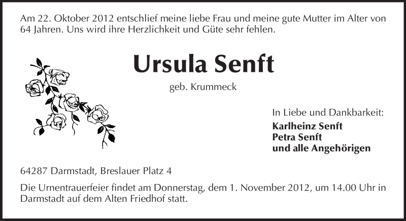 Hier finden Sie alle Traueranzeigen aus der Zeitung, die bisher für Ursula Senft erschienen sind. Weitere Traueranzeigen, die in der Zeitung erscheinen, werden hier ebenfalls aufgelistet