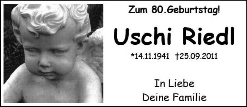 Hier finden Sie alle Traueranzeigen aus der Zeitung, die bisher für Uschi Riedl erschienen sind. Weitere Traueranzeigen, die in der Zeitung erscheinen, werden hier ebenfalls aufgelistet