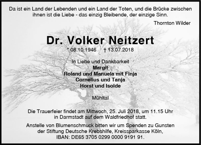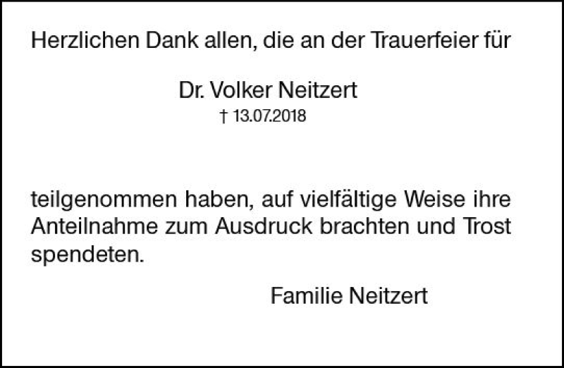 Hier finden Sie alle Traueranzeigen aus der Zeitung, die bisher für Volker Neitzert erschienen sind. Weitere Traueranzeigen, die in der Zeitung erscheinen, werden hier ebenfalls aufgelistet