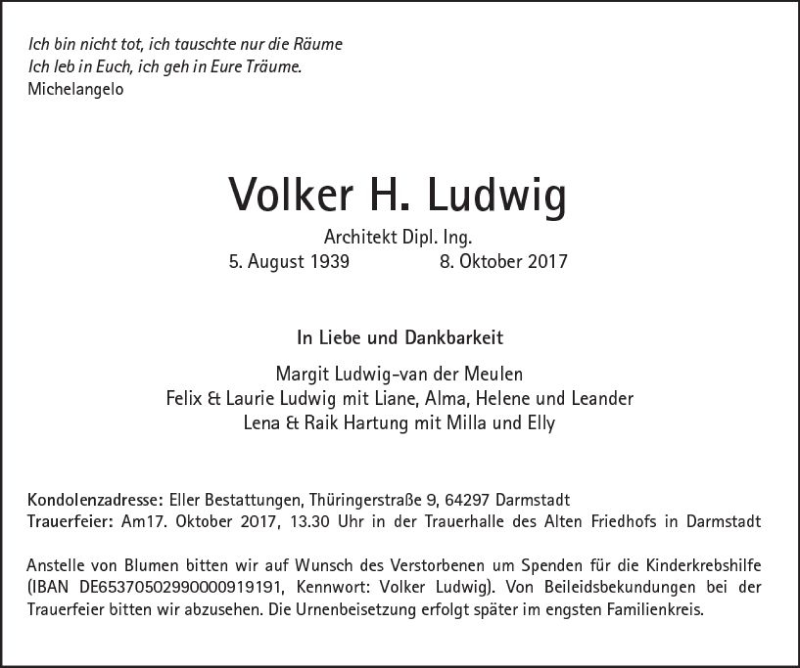 Hier finden Sie alle Traueranzeigen aus der Zeitung, die bisher für Volker H. Ludwig erschienen sind. Weitere Traueranzeigen, die in der Zeitung erscheinen, werden hier ebenfalls aufgelistet
