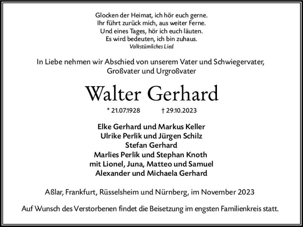 Hier finden Sie alle Traueranzeigen aus der Zeitung, die bisher für Walter Gerhard erschienen sind. Weitere Traueranzeigen, die in der Zeitung erscheinen, werden hier ebenfalls aufgelistet