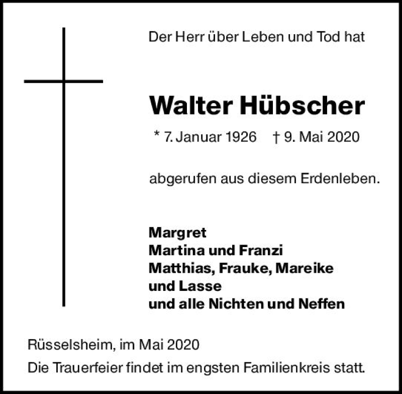 Hier finden Sie alle Traueranzeigen aus der Zeitung, die bisher für Walter Hübscher erschienen sind. Weitere Traueranzeigen, die in der Zeitung erscheinen, werden hier ebenfalls aufgelistet
