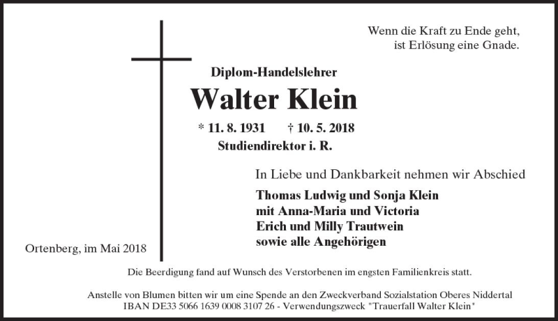Hier finden Sie alle Traueranzeigen aus der Zeitung, die bisher für Walter Klein erschienen sind. Weitere Traueranzeigen, die in der Zeitung erscheinen, werden hier ebenfalls aufgelistet