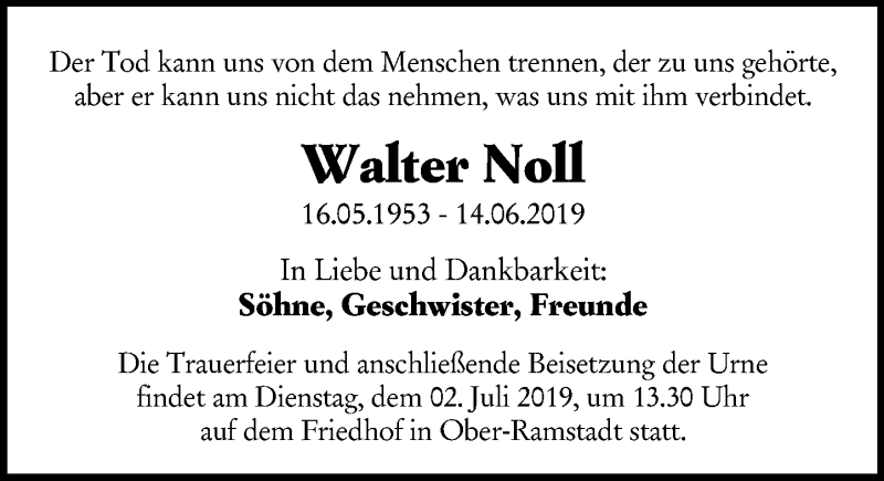 Hier finden Sie alle Traueranzeigen aus der Zeitung, die bisher für Walter Noll erschienen sind. Weitere Traueranzeigen, die in der Zeitung erscheinen, werden hier ebenfalls aufgelistet