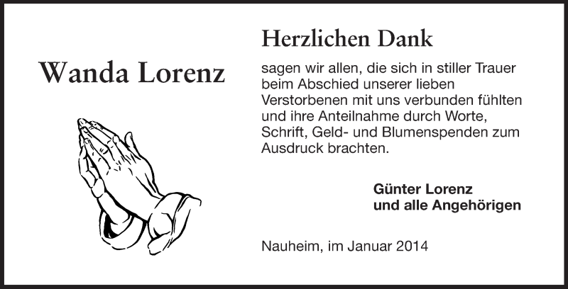 Hier finden Sie alle Traueranzeigen aus der Zeitung, die bisher für Wanda Lorenz erschienen sind. Weitere Traueranzeigen, die in der Zeitung erscheinen, werden hier ebenfalls aufgelistet