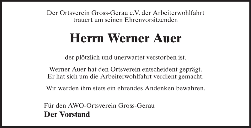 Hier finden Sie alle Traueranzeigen aus der Zeitung, die bisher für Werner Auer erschienen sind. Weitere Traueranzeigen, die in der Zeitung erscheinen, werden hier ebenfalls aufgelistet