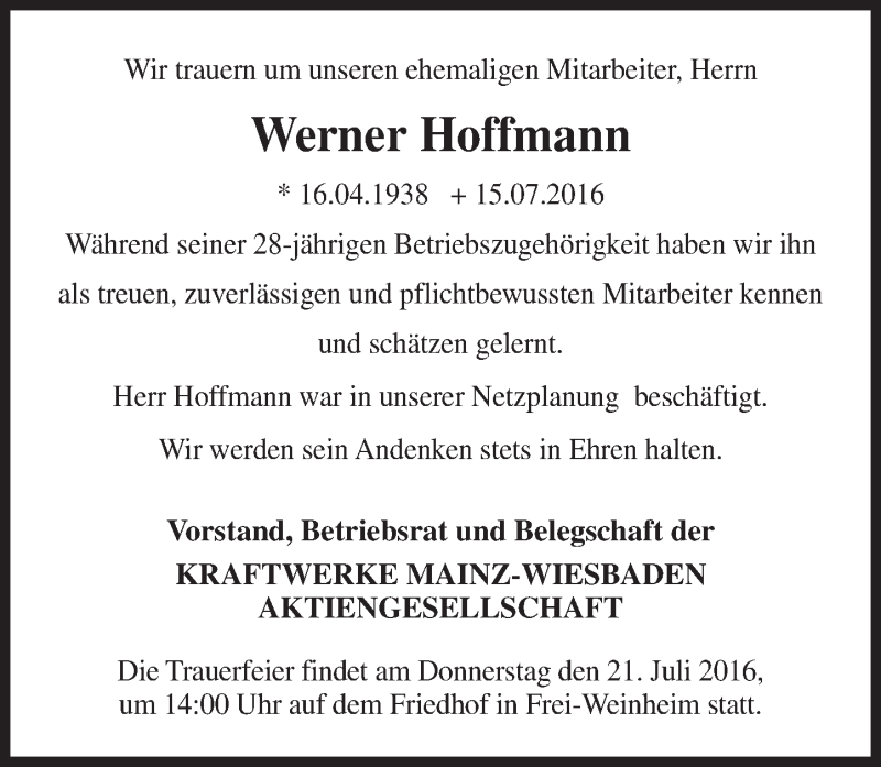 Hier finden Sie alle Traueranzeigen aus der Zeitung, die bisher für Werner Hoffmann erschienen sind. Weitere Traueranzeigen, die in der Zeitung erscheinen, werden hier ebenfalls aufgelistet