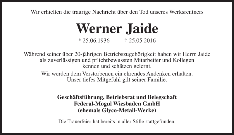 Hier finden Sie alle Traueranzeigen aus der Zeitung, die bisher für Werner Jaide erschienen sind. Weitere Traueranzeigen, die in der Zeitung erscheinen, werden hier ebenfalls aufgelistet