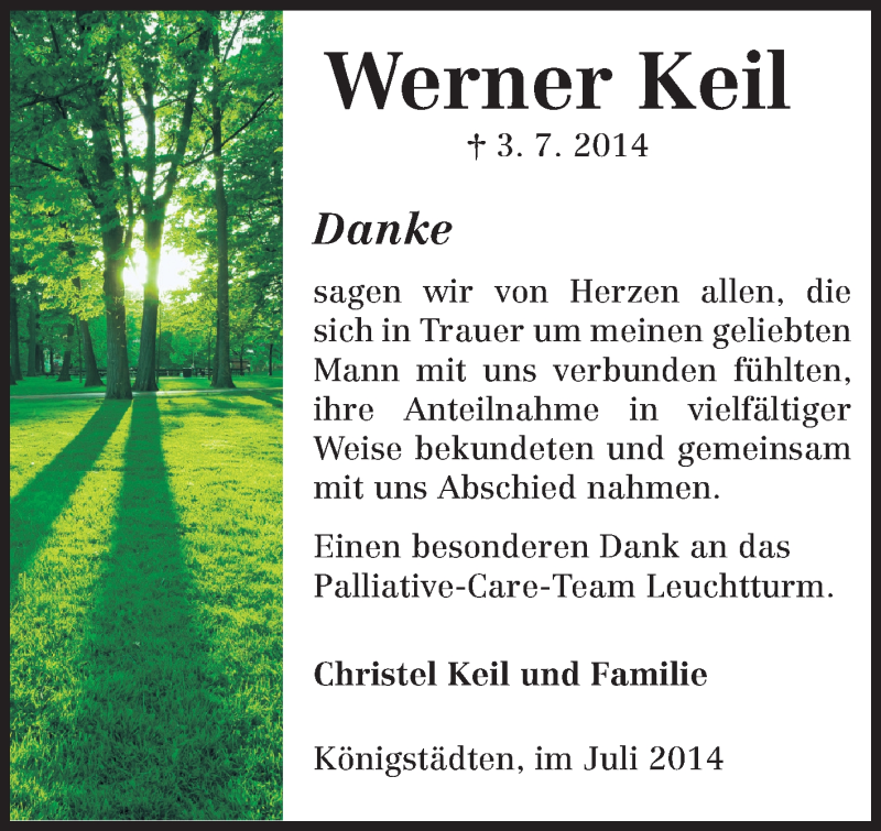 Hier finden Sie alle Traueranzeigen aus der Zeitung, die bisher für Werner Keil erschienen sind. Weitere Traueranzeigen, die in der Zeitung erscheinen, werden hier ebenfalls aufgelistet