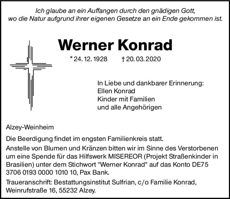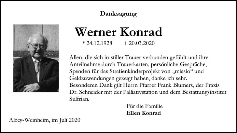 Hier finden Sie alle Traueranzeigen aus der Zeitung, die bisher für Werner Konrad erschienen sind. Weitere Traueranzeigen, die in der Zeitung erscheinen, werden hier ebenfalls aufgelistet