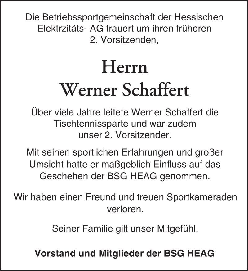 Hier finden Sie alle Traueranzeigen aus der Zeitung, die bisher für Werner Schaffert erschienen sind. Weitere Traueranzeigen, die in der Zeitung erscheinen, werden hier ebenfalls aufgelistet