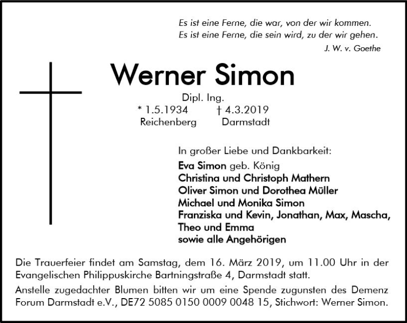 Hier finden Sie alle Traueranzeigen aus der Zeitung, die bisher für Werner Simon erschienen sind. Weitere Traueranzeigen, die in der Zeitung erscheinen, werden hier ebenfalls aufgelistet