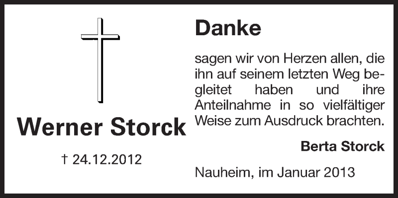 Hier finden Sie alle Traueranzeigen aus der Zeitung, die bisher für Werner Storck erschienen sind. Weitere Traueranzeigen, die in der Zeitung erscheinen, werden hier ebenfalls aufgelistet