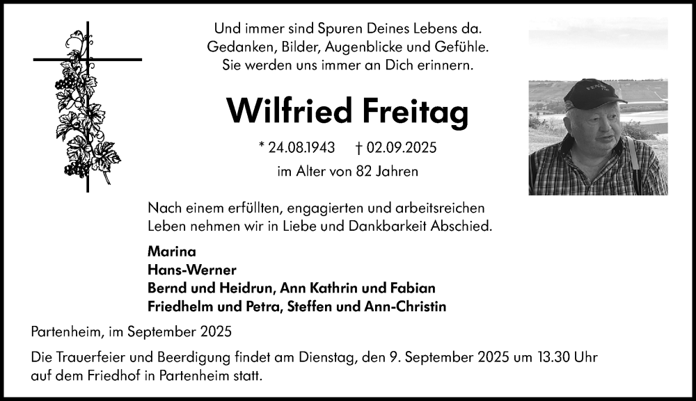 Hier finden Sie alle Traueranzeigen aus der Zeitung, die bisher für Wilfried Freitag erschienen sind. Weitere Traueranzeigen, die in der Zeitung erscheinen, werden hier ebenfalls aufgelistet