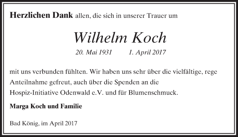 Hier finden Sie alle Traueranzeigen aus der Zeitung, die bisher für Wilhelm Koch erschienen sind. Weitere Traueranzeigen, die in der Zeitung erscheinen, werden hier ebenfalls aufgelistet
