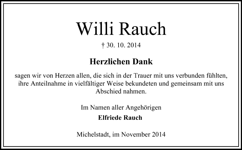 Hier finden Sie alle Traueranzeigen aus der Zeitung, die bisher für Willi Rauch erschienen sind. Weitere Traueranzeigen, die in der Zeitung erscheinen, werden hier ebenfalls aufgelistet