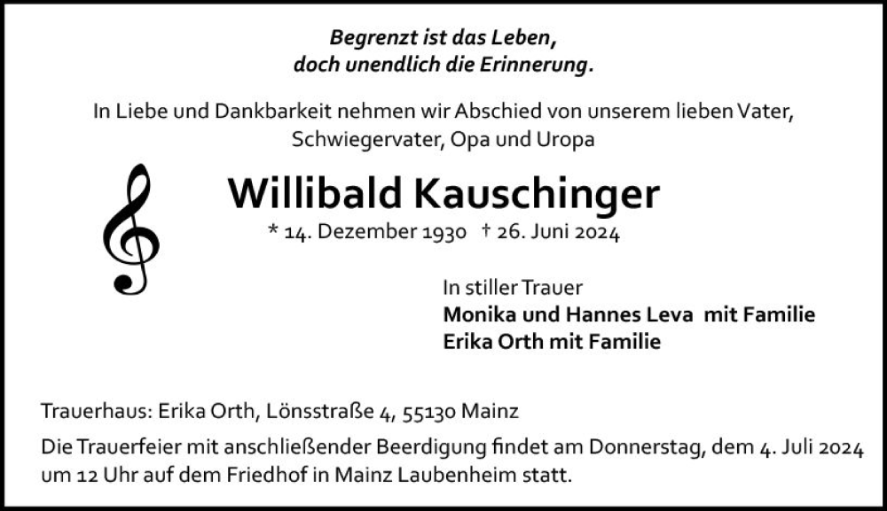 Hier finden Sie alle Traueranzeigen aus der Zeitung, die bisher für Willibald Kauschinger erschienen sind. Weitere Traueranzeigen, die in der Zeitung erscheinen, werden hier ebenfalls aufgelistet