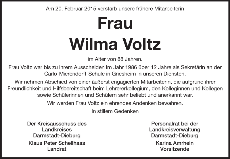 Hier finden Sie alle Traueranzeigen aus der Zeitung, die bisher für Wilma Voltz erschienen sind. Weitere Traueranzeigen, die in der Zeitung erscheinen, werden hier ebenfalls aufgelistet