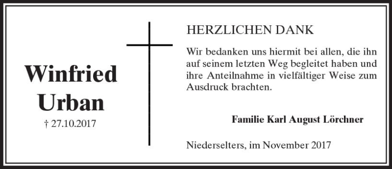 Hier finden Sie alle Traueranzeigen aus der Zeitung, die bisher für Winfried Urban erschienen sind. Weitere Traueranzeigen, die in der Zeitung erscheinen, werden hier ebenfalls aufgelistet