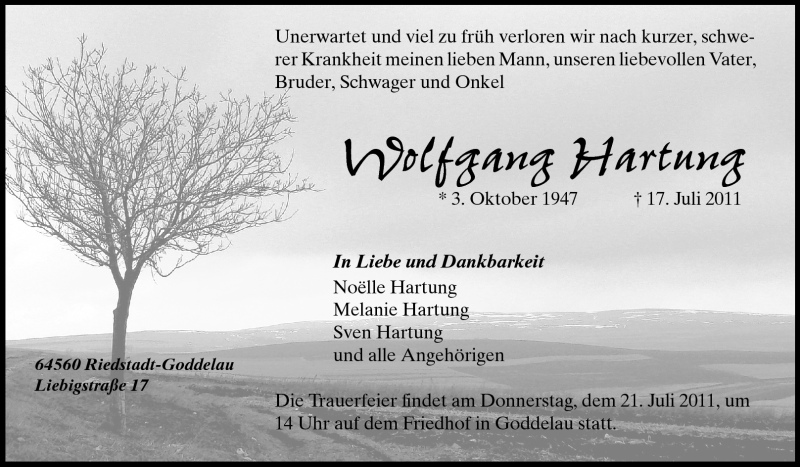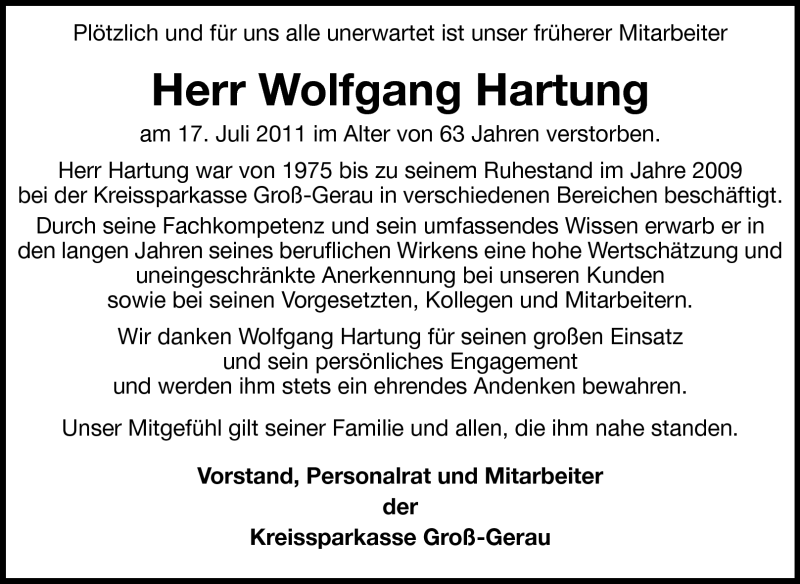 Hier finden Sie alle Traueranzeigen aus der Zeitung, die bisher für Wolfgang Hartung erschienen sind. Weitere Traueranzeigen, die in der Zeitung erscheinen, werden hier ebenfalls aufgelistet
