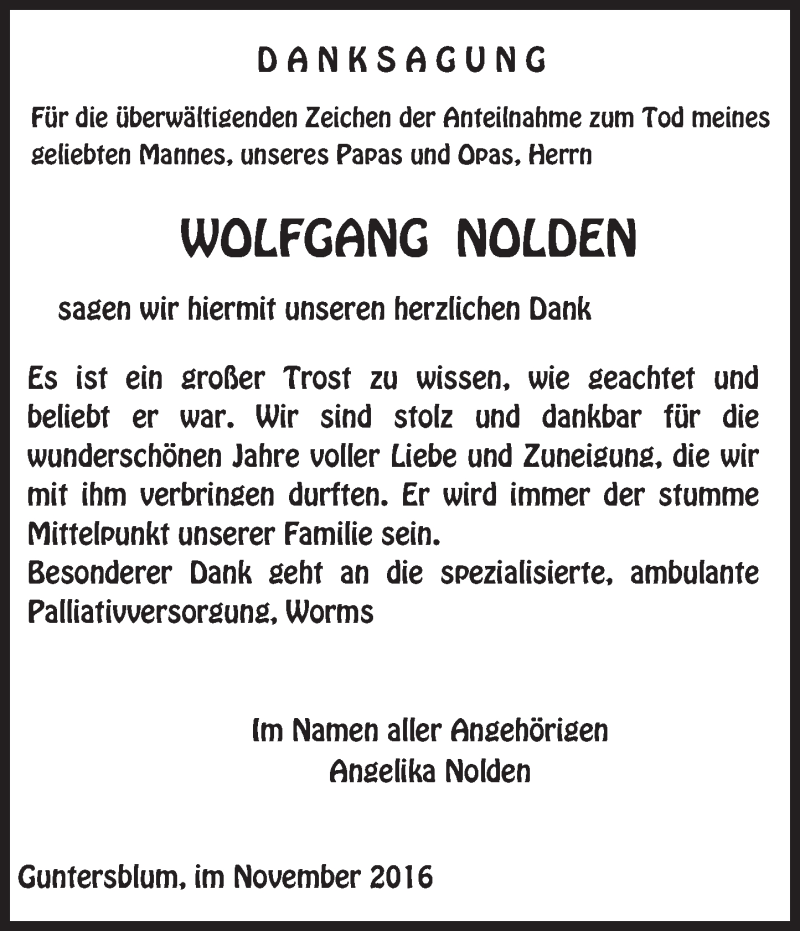 Hier finden Sie alle Traueranzeigen aus der Zeitung, die bisher für Wolfgang Nolden erschienen sind. Weitere Traueranzeigen, die in der Zeitung erscheinen, werden hier ebenfalls aufgelistet