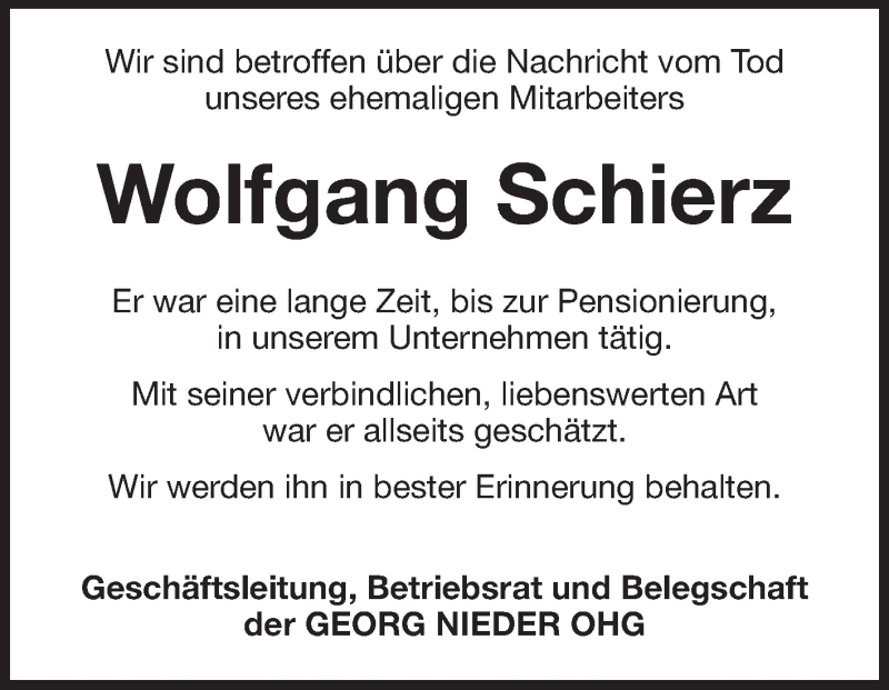 Hier finden Sie alle Traueranzeigen aus der Zeitung, die bisher für Wolfgang Schierz erschienen sind. Weitere Traueranzeigen, die in der Zeitung erscheinen, werden hier ebenfalls aufgelistet