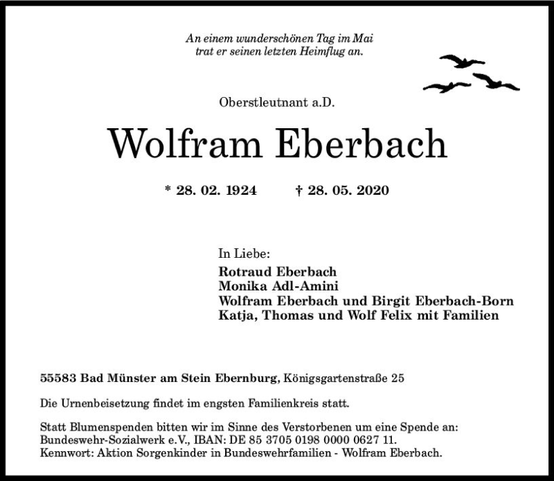 Hier finden Sie alle Traueranzeigen aus der Zeitung, die bisher für Wolfram Eberbach erschienen sind. Weitere Traueranzeigen, die in der Zeitung erscheinen, werden hier ebenfalls aufgelistet