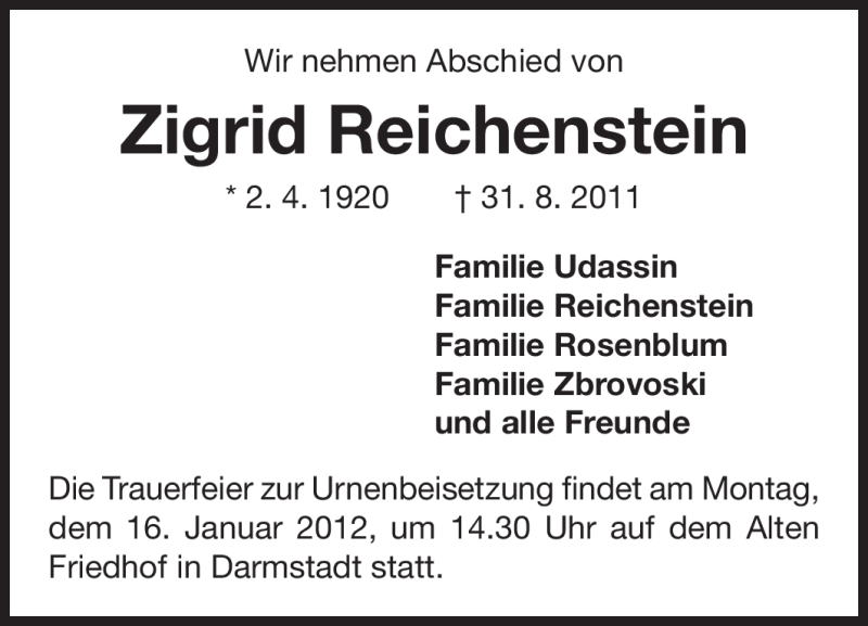 Hier finden Sie alle Traueranzeigen aus der Zeitung, die bisher für Zigrid Reichenstein erschienen sind. Weitere Traueranzeigen, die in der Zeitung erscheinen, werden hier ebenfalls aufgelistet